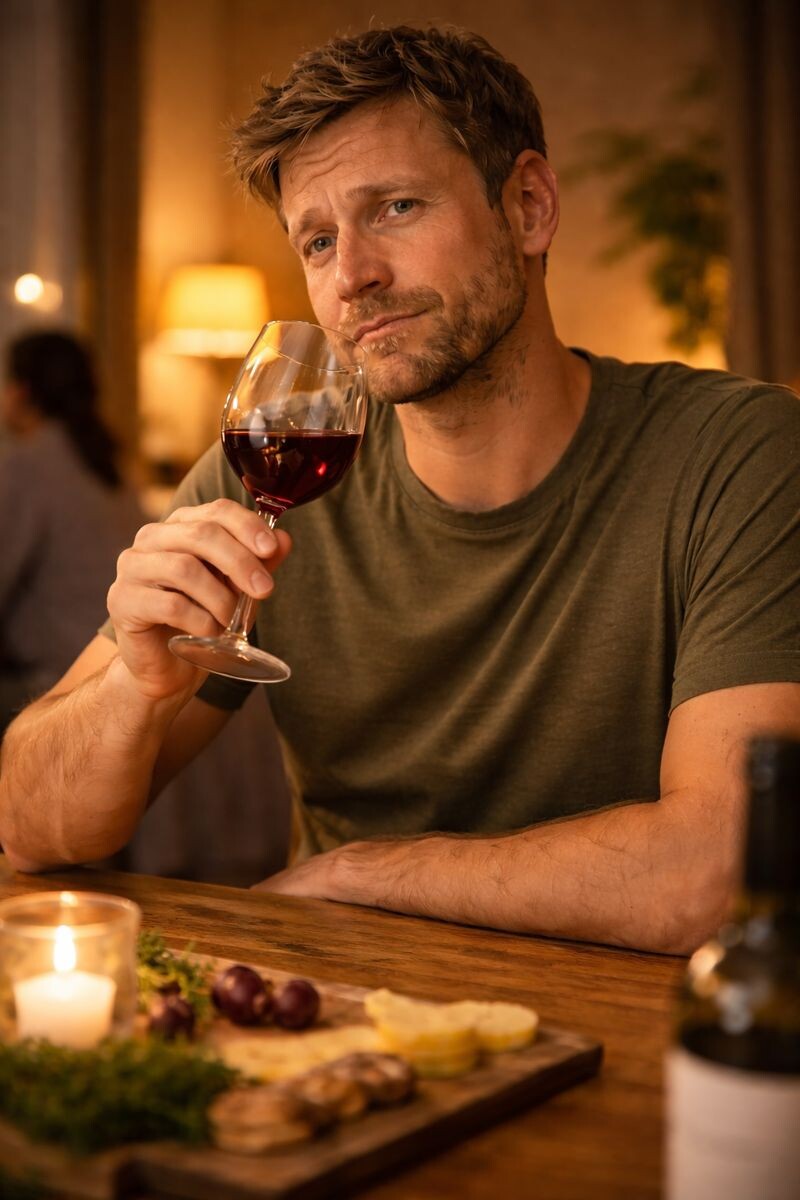 И ты понимаешь: если скажешь “не знаю” — это как будто ты “не в теме”. А мужчине 30+ быть “не в теме” рядом с другими взрослыми часто неприятно. Поэтому ты включаешь актёра: берёшь бокал, нюхаешь, смотришь на свет, говоришь что-то уверенное… и пьёшь то, что налили. Потому что в итоге ты всё равно пришёл не на дегустацию, а на ужин.