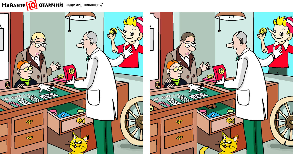 10 отличий. Тест на внимание и зоркость. Про золотые монеты Буратино. Помните, в сказке?