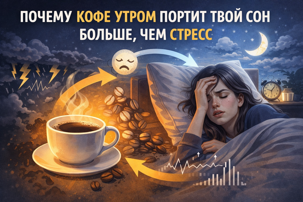 Причина — утренний кофе. Звучит странно, но именно он незаметно ломает сон сильнее, чем вечерний стресс. Кофе не даёт энергию.