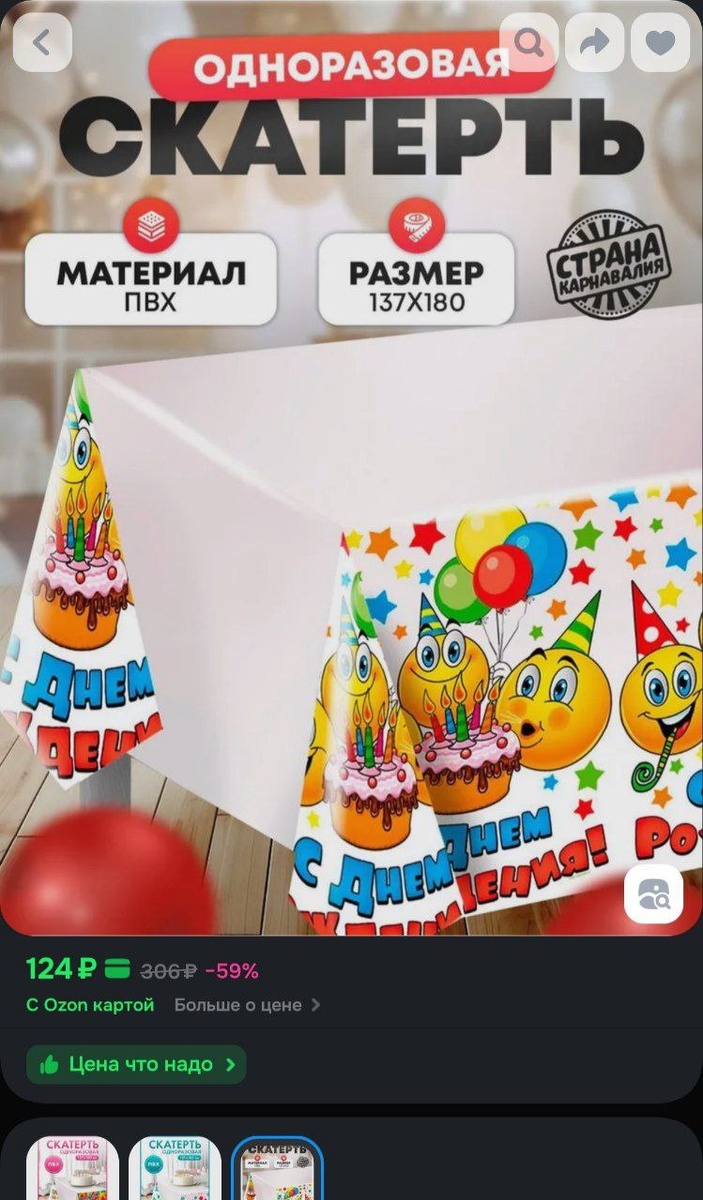 Скатерть "С Днем Рождения", смайлы и тортик за 124₽