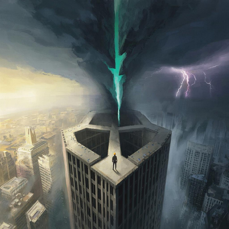 Если бы через много недель над этим местом пролетал орел, он бы увидел квадрат, в каждом углу которого стояло по одному небоскребу, а в центре возвышалась башня, похожая на лондонский Мэри-Экс (только вместо стекла была металлическая облицовка) – гигантская пуля, окруженная стражами. Впрочем, орла бы это вряд ли заинтересовало.