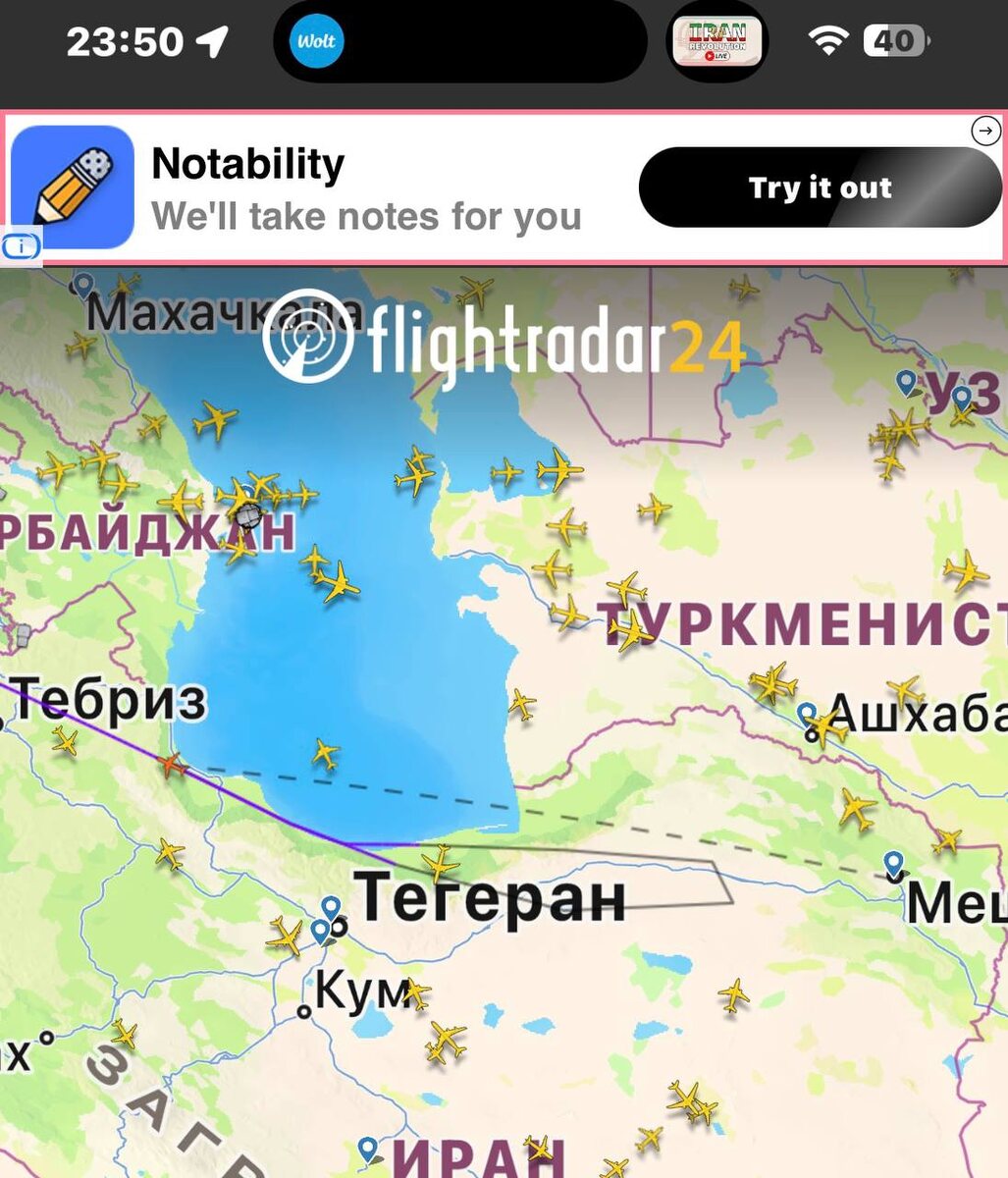 Несколько авиарейсов, летевших в иранские города, развернулись и теперь летят обратно
