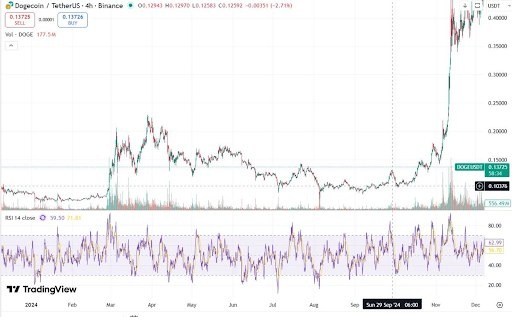 Π΄Π²ΠΈΠΆΠ΅Π½ΠΈΠΉ Dogecoin ΠΏΠΎΠΊΠ°Π·ΡΠ²Π°Π΅Ρ, ΡΡΠΎ ΠΏΠΎΡΠ»Π΅ Π΄Π»ΠΈΡΠ΅Π»ΡΠ½ΠΎΠΉ ΠΊΠΎΠ½ΡΠΎΠ»ΠΈΠ΄Π°ΡΠΈΠΈ ΡΠ΅Π½Π° ΠΌΠ΅ΠΌΠΊΠΎΠΈΠ½Π° ΡΠΊΠ»ΠΎΠ½Π½Π° ΠΊ Π²Π·ΡΡΠ²Π½ΠΎΠΌΡ ΡΠΎΡΡΡ. ΠΡΠ»ΠΈ DOGE ΠΏΠΎΠ²ΡΠΎΡΠΈΡ Π΄ΠΈΠ½Π°ΠΌΠΈΠΊΡ ΠΊΠΎΠ½ΡΠ° 2024 Π³ΠΎΠ΄Π°, ΠΊΠΎΠ³Π΄Π° ΠΎΠ½ Π²ΡΡΠΎΡ Π² 4.5 ΡΠ°Π·Π°, ΡΠΎ ΠΏΡΠΈ ΡΠ΅ΠΊΡΡΠΈΡ