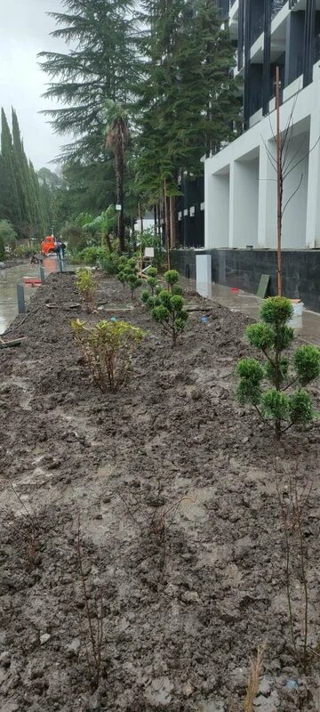 Каждый проект это отдельная история. Так начинался проект в Адлере. Изучаем техническое задание Заказчика. Определяем климатическую зону посадок, от этого зависит подбор растений. Дизайнеры трудятся над чертежами, расчетами и подготовкой самого проекта. Учитываем повышенную температуру в течение большей части сезона, места солнечной и теневой посадки растений. Составляется смета посадочного материала и работ. Также важно при подборе учитывать возраст растений и их высоту. Чтоб красиво все смотрелось не только при посадке, но и в процессе роста. Так выглядит зона посадки через несколько лет. Многое зависит и от ухода за посадками, своевременный полив, внесение удобрений, борьба с вредителями, сезонные работы. В этом проекте использовали растения для формирования шарообразной формы кроны. Использовали и цветущие растения и кустарники и лиственные декоративные: юкку, рододендроны, пеларгонию, хосты, гвоздики, штамбовые деревья, скумпию, мискантусы, кизильник блестящий для формирования