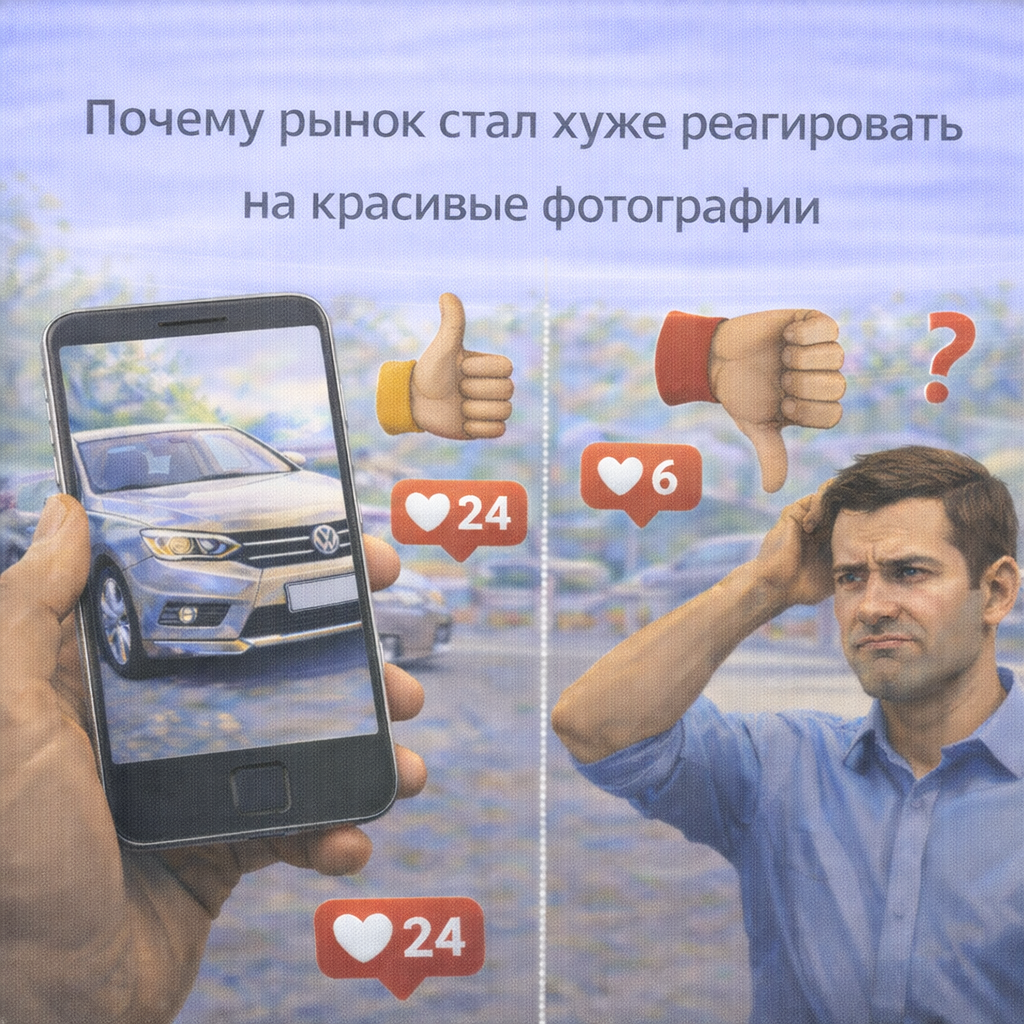 Ещё несколько лет назад качественные фотографии решали многое. Хороший свет, чистый автомобиль, аккуратный фон – и объявление выделялось из десятков других. Сегодня ситуация изменилась. Слишком красивые фотографии всё чаще настораживают, а не привлекают. Разберёмся, почему визуал перестал быть безусловным плюсом, и что это говорит о рынке. Покупатель стал опытнее. Красивые фото больше не считываются как: Вместо этого всё чаще возникает мысль: «Что пытаются показать – и что скрывают?» Большинство покупателей заметили закономерность: часто означают: Это не плохо само по себе, но снижает уровень доверия у части аудитории. Многие покупатели проходили через это: После нескольких таких осмотров формируется устойчивая связь: чем красивее фото, тем выше риск разочарования. Это не правило, но рынок работает на ощущениях. Сегодня несложно: Покупатели это понимают и воспринимают: красоту как временный эффект, а не как показатель состояния. Качественные камеры есть у всех. Раньше хорошие фото: Се