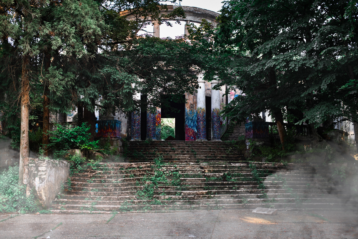 Одинокий автомобиль, быстро огибая крутые повороты, забирается всё выше и выше по старому, местами размытому серпантину на отметку 666 метров над уровнем моря. Здесь, в Сочи, в районе Хосты, на горе Ахун располагается один из странных объектов. А именно, заброшенный ресторан с одноименным названием с горой — Ахун. Куда и направляется эта машина, в которой едем мы. Открыт этот ресторан был в 1937 году. По неподтвержденной информации, эту гору посещал сам Сталин, и ему понравились виды с этой горы. После чего в кратчайшие сроки силами заключенных была построена дорога на самый верх, где и расположился ресторан. Проработал он, правда, недолго, всего один год. Что там произошло, покрыто мраком тайны. Самая распространенная версия, что в ресторане возник сильный пожар и даже были жертвы. По другой из версий, ресторан закрыли из-за антисанитарии. После ресторан долгое время не работал. Потом грянула Великая Отечественная война, и про него забыли на долгие годы. Но после войны его всё же восс
