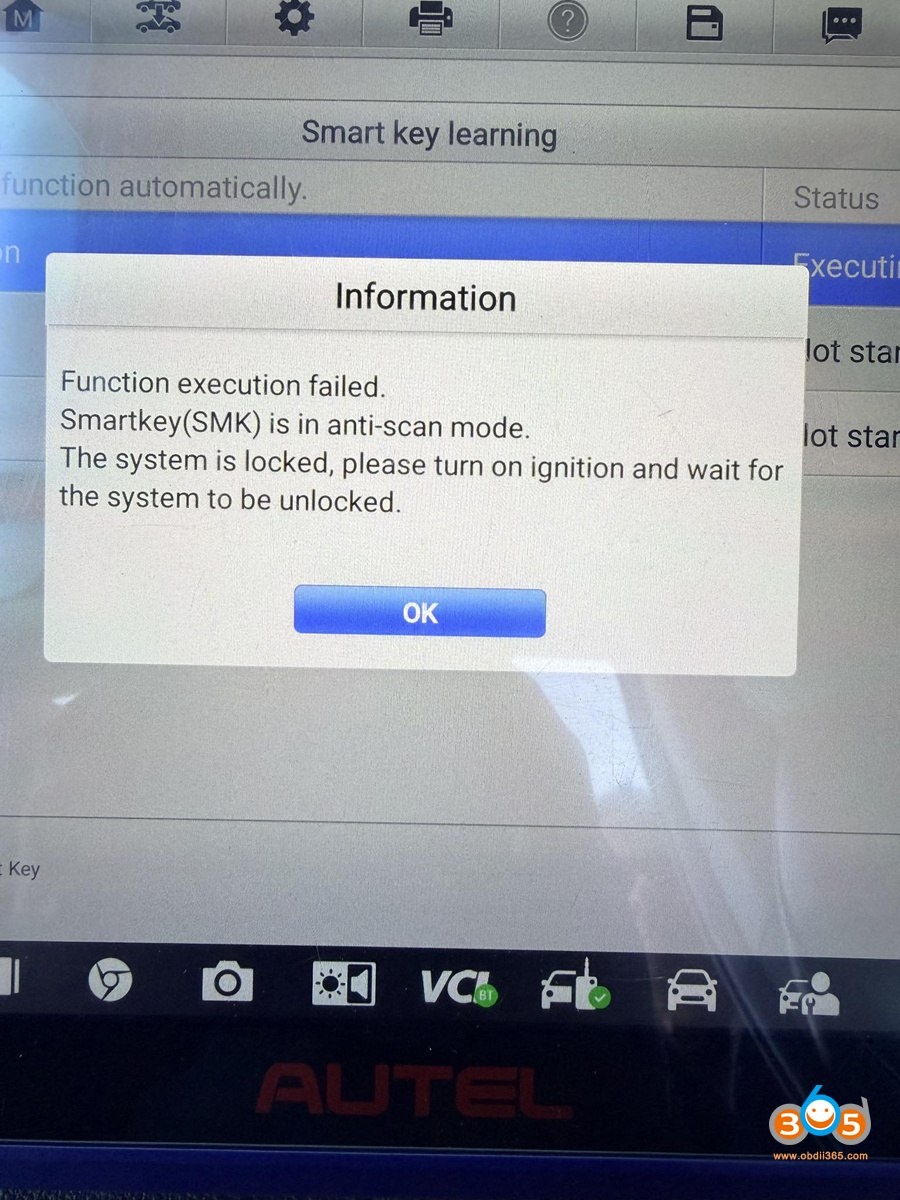 Решение ошибки в режиме антисканирования для Hyundai/Kia SMK в Autel IM608