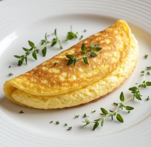 - Воздушность: добавьте 1ст. л. муки или крахмала — омлет станет пышнее.