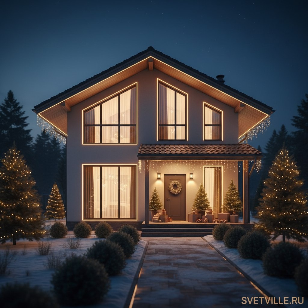 Новогодняя иллюминация для дома в Москве, СПБ и области