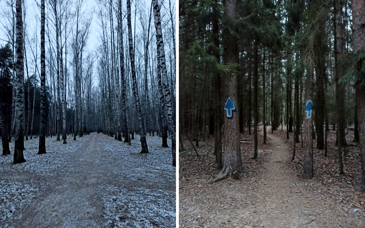 Дальше начался Правдинский лес. Все эти тропинки утром и вечером, конечно, популярны для выгула четвероногих. В какой-то момент навстречу мне побежала борзая. Хозяин — пожилой хорошо одетый человек, в очках и с бородкой, выдал как всегда: «Не бойтесь, это охотничья собака, не тронет».