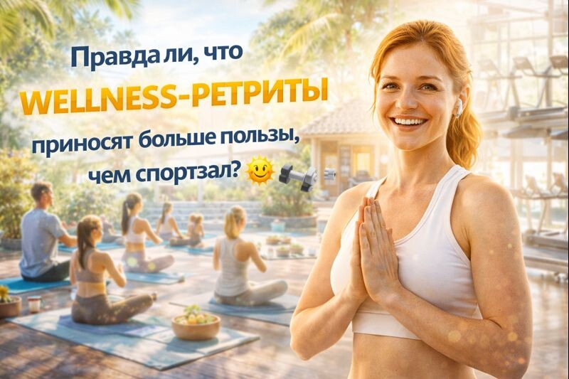 Wellness-ретриты обещают всё сразу: минус стресс, плюс осознанность, лёгкое тело, перезагрузка жизни. Спортзал честнее: "будут тренировки, местами больно, результат - потом".