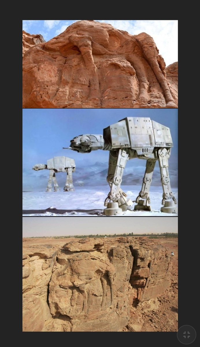 В антинаучном мире — сенсация, способная переписать не только учебники по археологии, но и все фан-вики по «Звёздным войнам»! На севере Аравийского полуострова, где учёные уже находили доисторических верблюдов в натуральную величину, обнаружен новый, ещё более загадочный объект. Изначально исследователи решили, что перед ними просто скала странной формы — ну, бывает, ветер так выдул. Но при ближайшем рассмотрении выяснилось: это не скала, а гигантский, окаменевший и, судя по всему, крайне древний шагоход — практически точная копия имперского АТ-АТ из далёкой-далёкой галактики.
