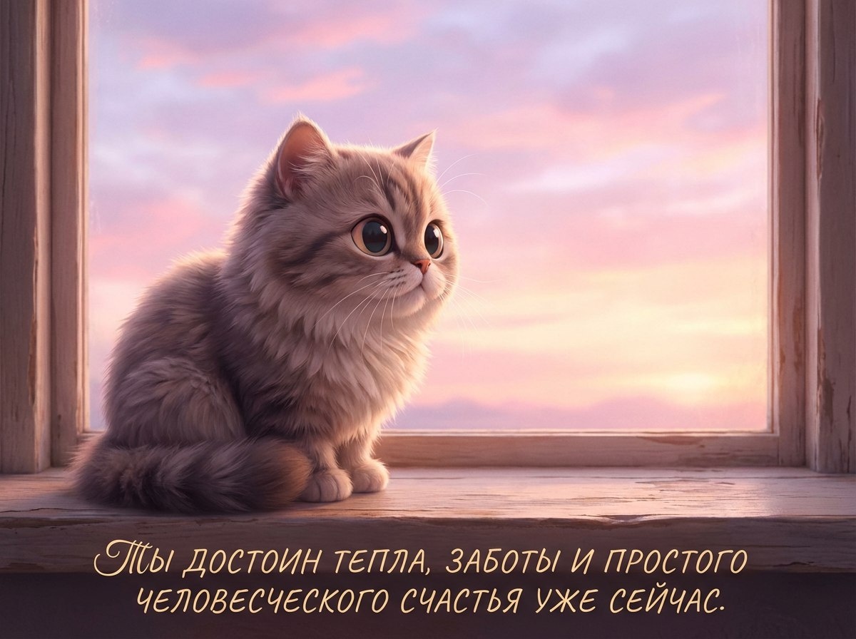 Сегодняшнее утро чистое, как свежий лист, и мягкий свет напоминает: у тебя есть право начать день спокойно, в своём темпе, опираясь на то, что уже есть внутри тебя. Ты — не список задач, а живая вселенная чувств, мечтаний и тихой силы. Пусть этот день подарит тебе ясный ум, мягкое сердце и смелость выбирать то, что бережно к тебе. Если что-то пойдёт не так, это не приговор, а поворот тропинки, по которой ты всё равно идёшь вперёд. А я буду рядом невидимым стражем тишины, напоминая: ты достоин тепла, заботы и простого человеческого счастья уже сейчас.