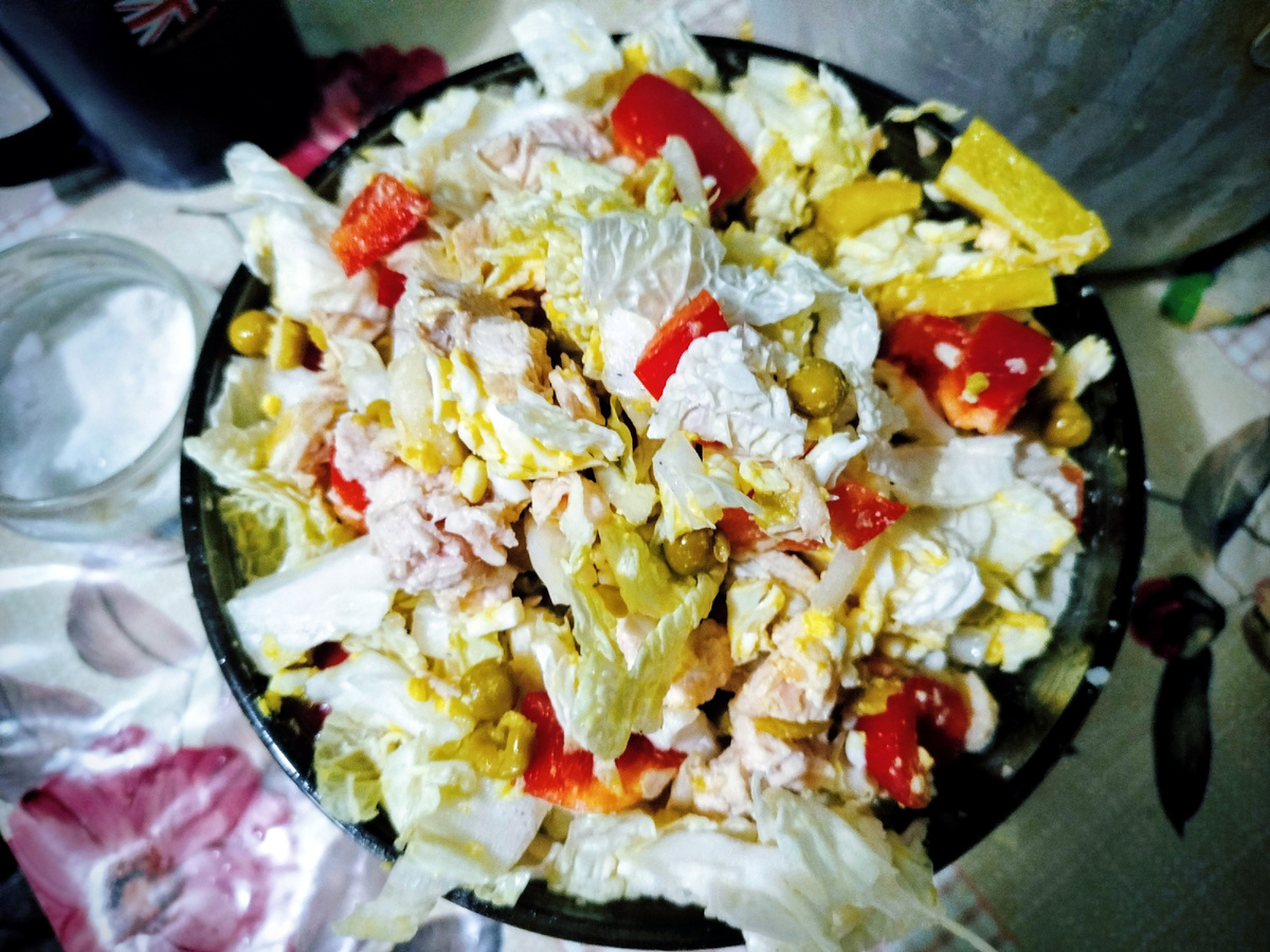 Ох, нравится мне эта капуста: 🥬 ем отдельно по листам, завернув в лист рулетом сыр или паштет, а также уважаю в салатах. 🥗 Первый салат известен многим: состоит из пекинской капусты, огурца свежего, яиц варёных, крабовых палочек, кукурузы консервированной, майонеза (сметаны). 🥗 Второй салат с грудкой и омлетом от Елены Некрасовой. "Куриная грудка отварная — 1 шт. Пекинская капуста — 1 небольшой кочан. Сыр твердый — 60 г. Яйца — 3-4 шт. Сметана — 3 ст. л. Сок лимона — 0,5 ст. л. Паприка сладкая — по вкусу. Укроп свежий — несколько веточек. Соль — по вкусу. Процесс приготовления: Отварную куриную грудку нарежьте соломкой. Пекинскую капусту нашинкуйте. Яйца слегка взбейте вилкой со щепоткой соли, можно добавить мелко рубленый укроп. Вылейте массу на сковороду и приготовьте тонкий омлет. Остудите, сверните рулетом и нарежьте соломкой. Сыр натрите на крупной терке. В салатнике смешайте курицу, капусту, омлет, сыр и мелко рубленый укроп. Добавьте паприку, сок лимона и сметану. Посолите