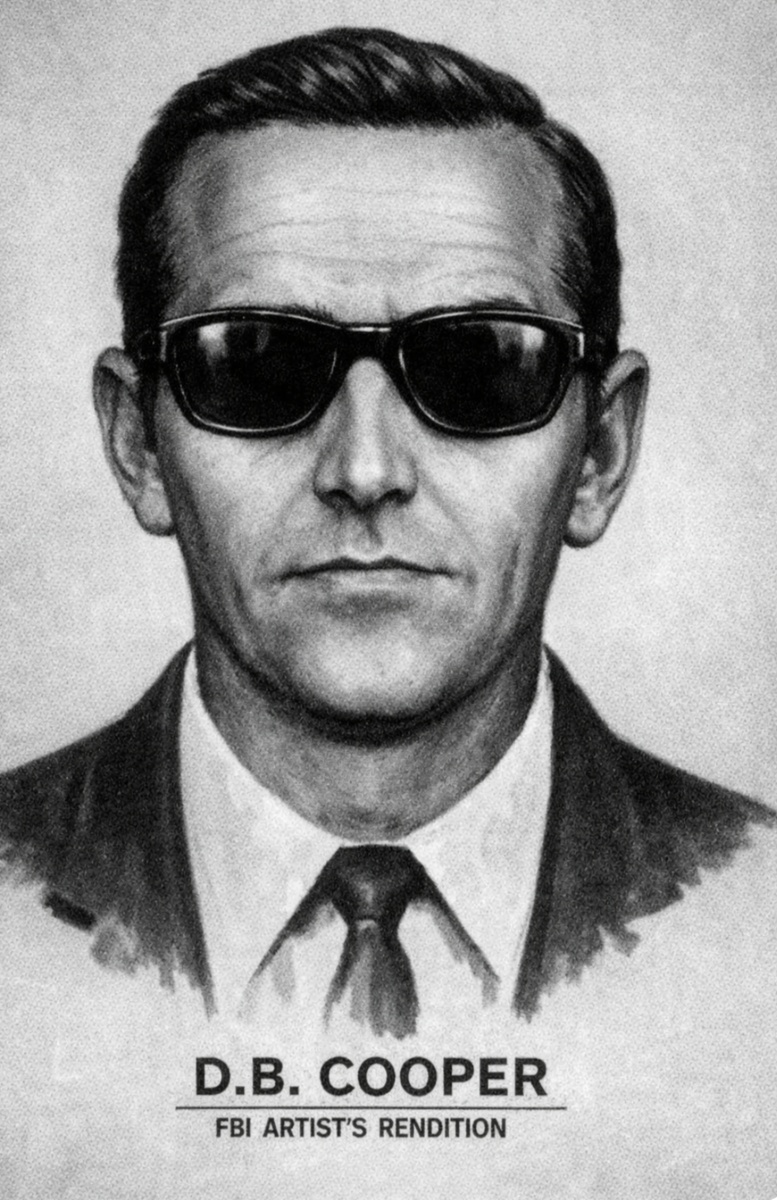 1. Загадка личности: Купер был вежлив, спокоен, не агрессивен. Он заказал на борту виски и бурбон (марку «Canadian Club»), курил сигареты марки «Raleigh». Он выглядел как обычный «белый воротничок»: 40-45 лет, рост около 180 см. Ни один из более чем 800 подозреваемых, проходивших по делу, не был окончательно опознан.