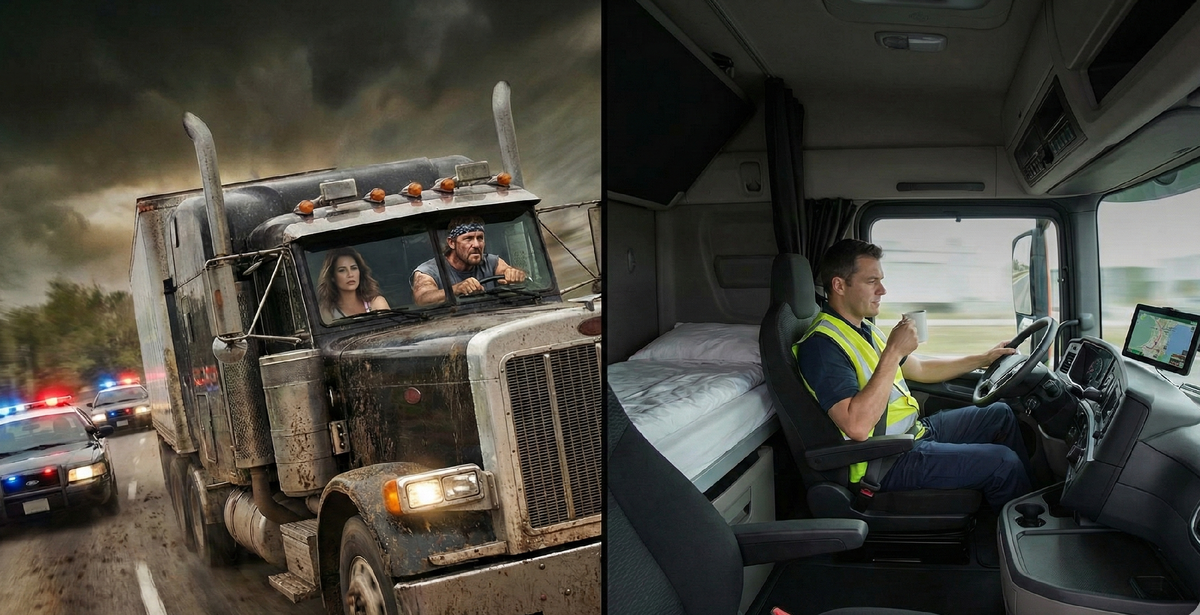 Вспомните любой классический боевик про водителей большегрузов. «Черный пес», «Изо всех сил» или знаменитый сериал «Дальнобойщики». Перед нами предстает суровый романтик в промасленной майке. Он одной рукой крутит баранку, другой отбивается от бандитов монтировкой, а на пассажирском сиденье у него обязательно сидит красивая попутчица, которую он подобрал пять минут назад. Он не спит сутками, пьет крепкий кофе литрами и всегда нарушает правила ради благой цели. Красиво? Безусловно.