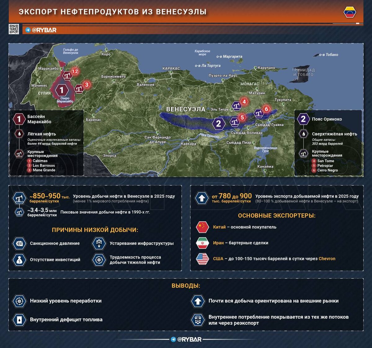 ▪️То есть от 80 до 100% добываемой нефти в Венесуэле в 2025 году идёт на экспорт, за счет чего и идет (шла) прибыль в венесуэльский бюджет.