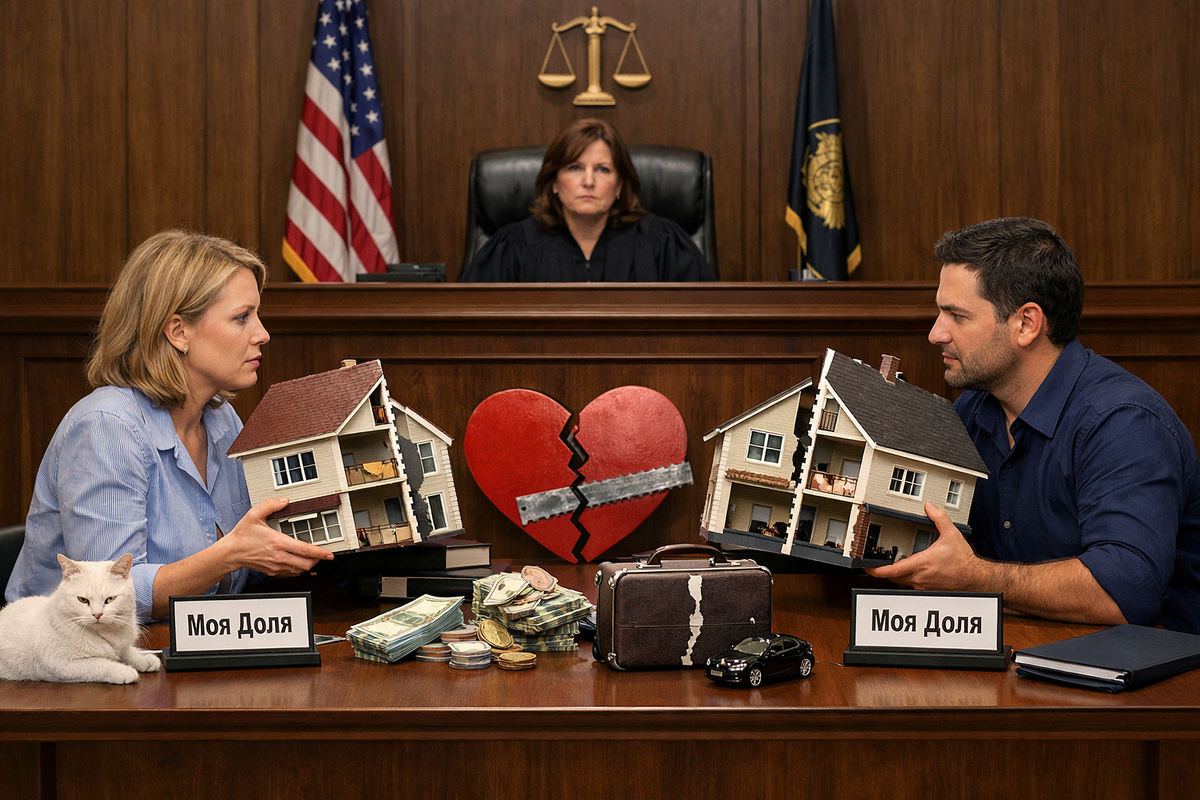 В суде при разводе нам поделят имущество и детей, взыщут алименты.