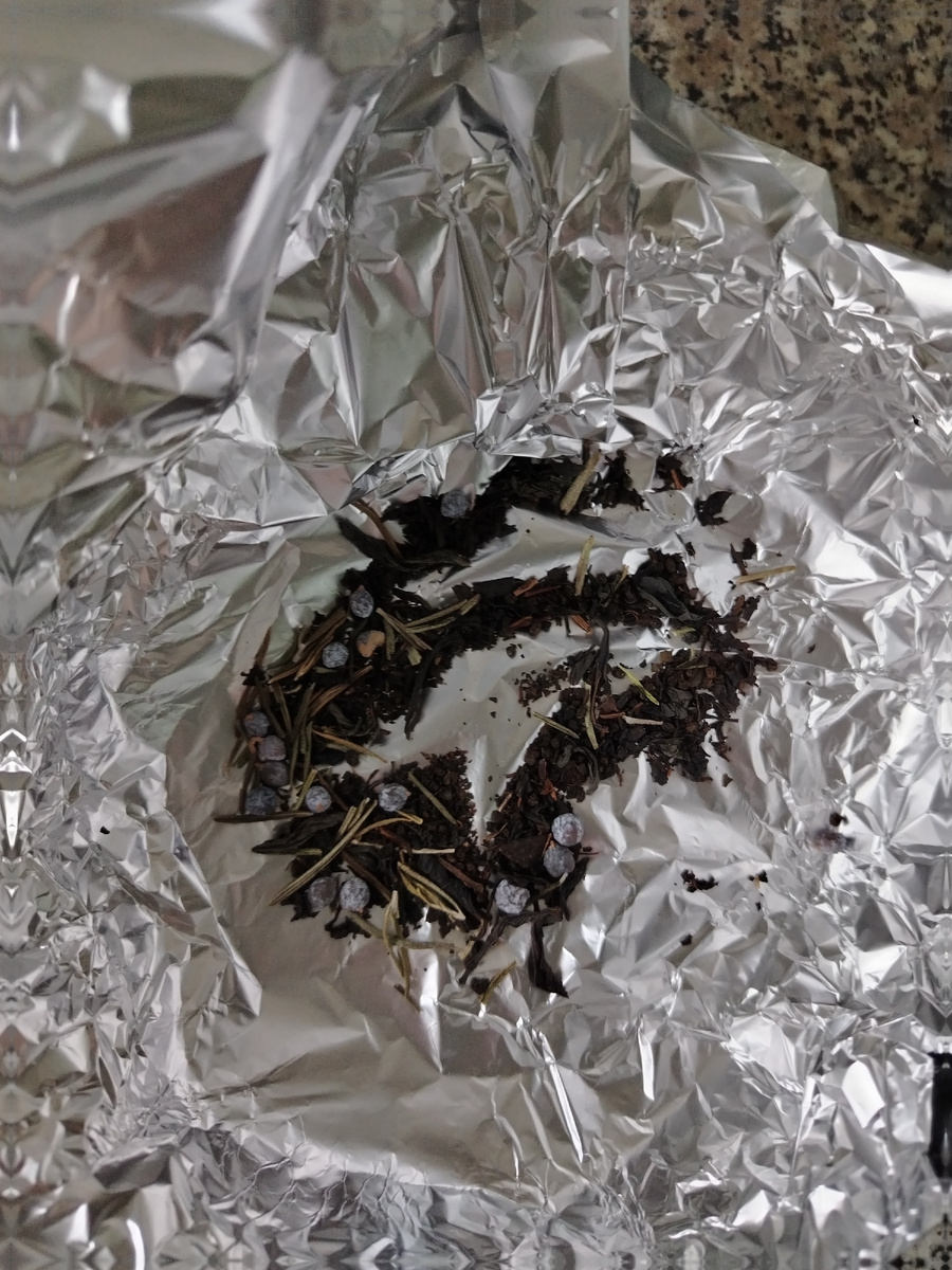 Основа для копчения такая же. Чай, розмарин, и можжевеловые шишки: