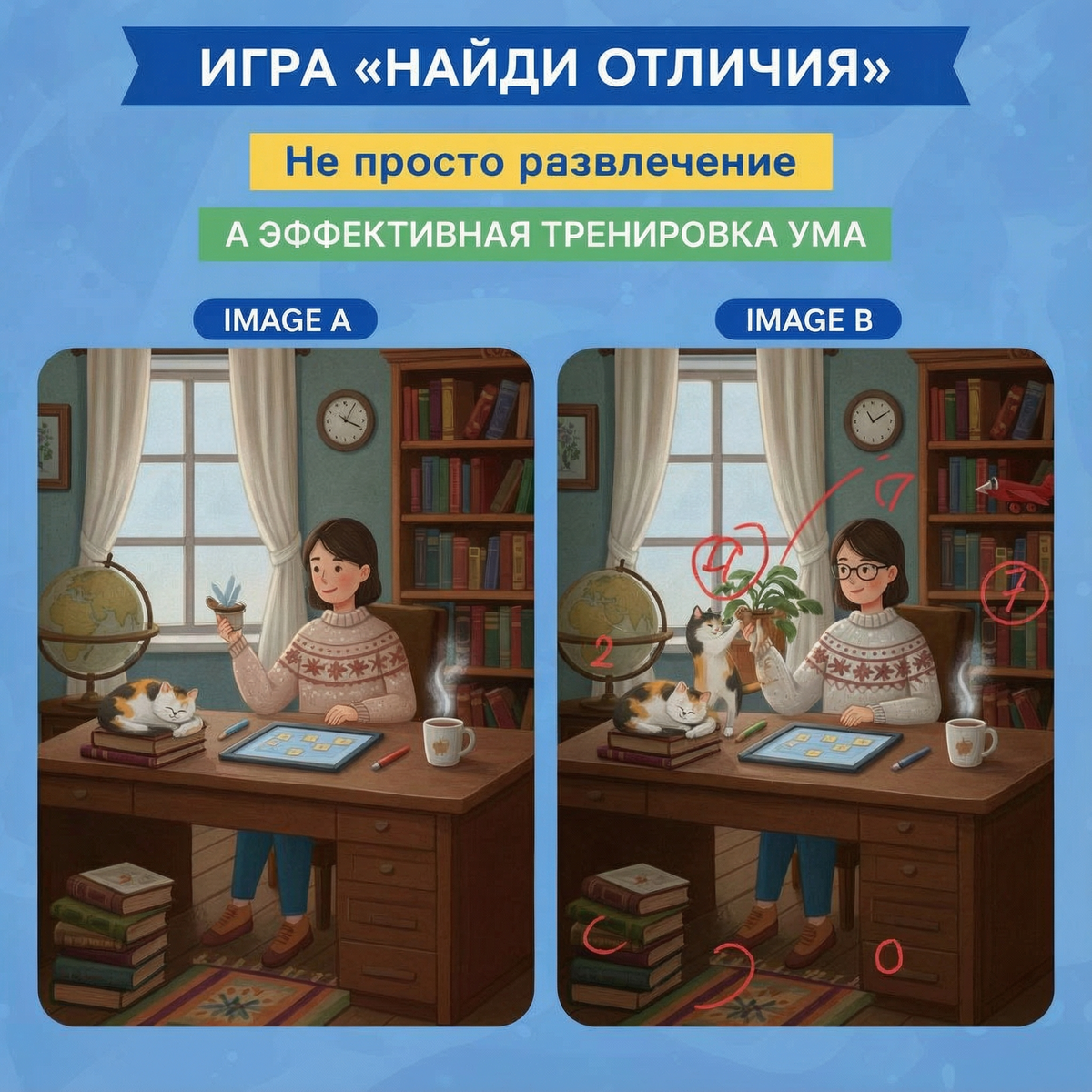 Игра «Найди отличия»: Не просто развлечение, а мощный тренажер для мозга