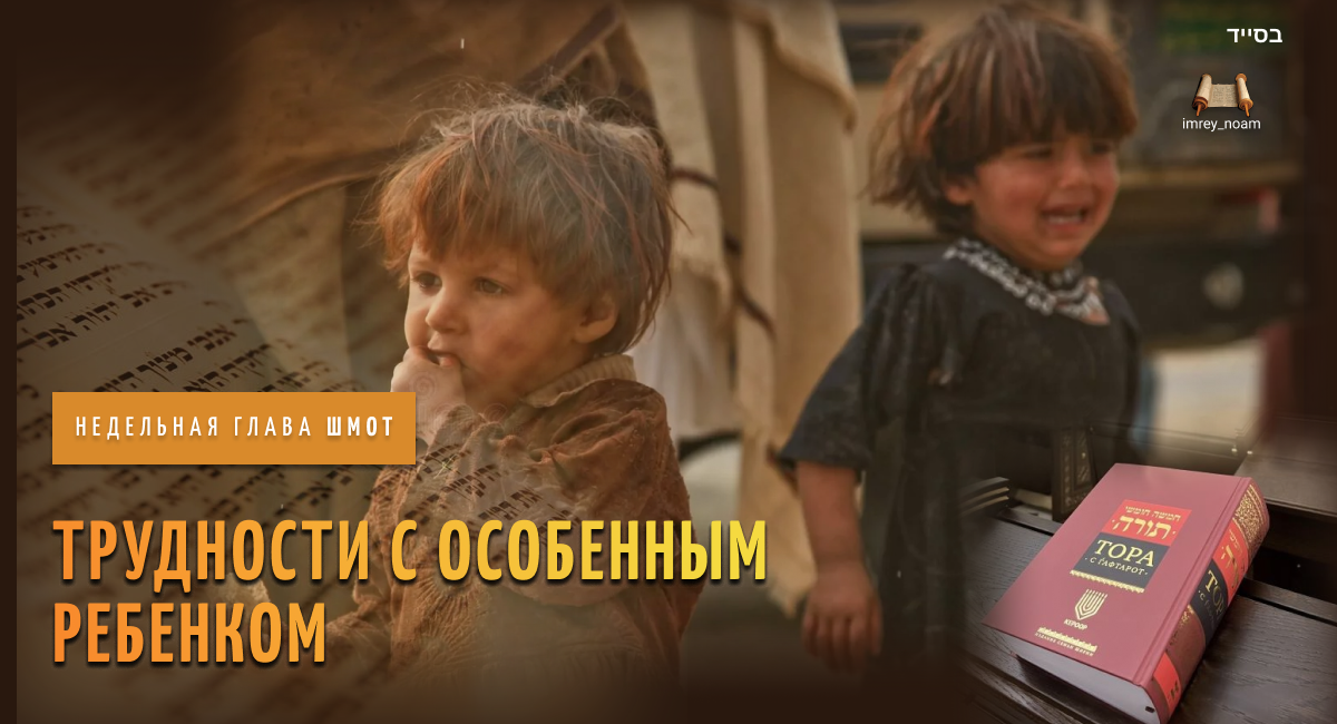 Перед нами рассказ о непростом испытании, выпавшем на долю семьи, все члены которой достойно его выдержали. Рассказывает рав Зильберштейн. Однажды я приехал в больницу «Маянот а-Йешуа» и мне сообщили, что одна из рожениц хочет сказать мне что-то важное. Когда я вошел к ней, она показала мне родившегося сына и попросила благословить его. У этого ребенка был синдром Дауна. Когда я спросил ее, какое она хочет благословение, мать ответила: «Благословите его, чтобы он достиг высокого уровня в Торе и трепета перед Небесами». Вот так – не больше, не меньше. Услышав ее ответ, я был весьма взволнован и, благословив сына, сказал ей: стоит постараться, чтобы обрезание делали в месте, где изучают Тору, чтобы заслуги ее изучения помогли ему, и он вырос полноценным человеком.
