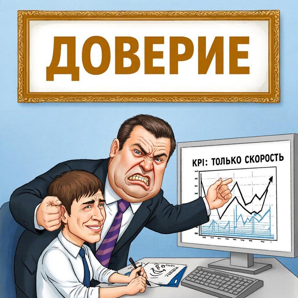 Их придумали на пике, когда денежный ливень смывал все проблемы. «Мы — семья!», «Доверие — наше всё!». А потом пришёл 2026 год. Деньги подорожали. И оказалось, что «семью» приходится увольнять, а «доверие» заменять жёстким контролем. Получается управленческий разрыв: на стене — одно, в чатах — другое. Компания живёт с шизофренией. 2. Их нарушает ваша же система поощрений.