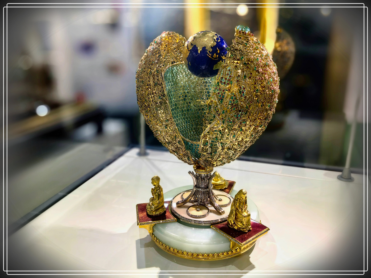 На что обращаешь внимание сразу - это купол. Если приглядеться к нему, то можно увидеть, что он полностью состоит из таблицы Менделеева. Ювелир искусно создал каждый элемент химической таблицы. А самое уникальное - это полностью ручная сборка, а не 3D-моделирование. На эту часть работы у мастера ушло очень много времени. Сложность состояла в том, чтобы при переплетении элементов сохранить форму яйца
