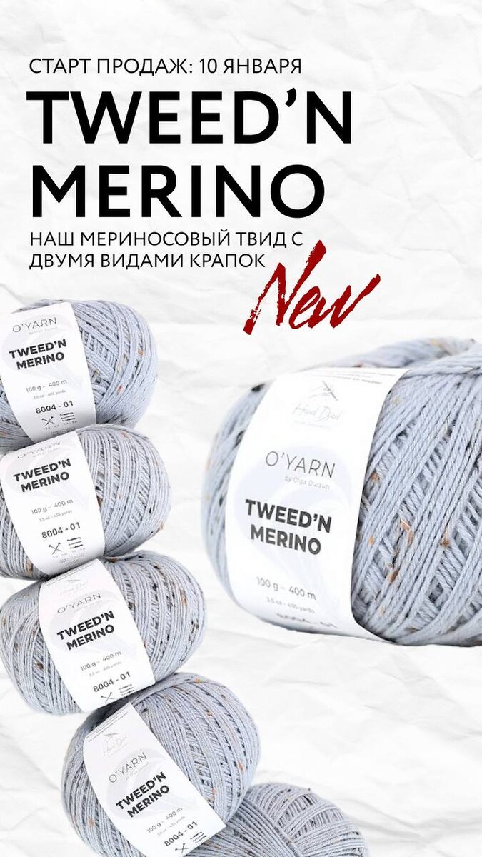 💥 И мы ждали этого момента очень долго. Наш 3 новый артикул — твид собственного производства O’YARN. Тот самый, который мы давно хотели сделать. И долго искали ту самую фабрику. 👉 Мы нашли качественное сырьё. 👉 Мы нашли фабрику, которая производит твид для международных, европейских марок. ❤️ И мы сделали твид для себя. Для O’YARN. Это мериносовый твид — нежный, мягкий, пластичный. Толщина — 400 метров. Состав — по стандарту носочной пряжи: меринос с 25% нейлона а значит — абсолютная универсальность. 😍 Носки? Да. Плечевые изделия? Конечно. Шапки, аксессуары? Легко. В одну нить — воздушно и нежно. В две нити — объемнее, теплее, выразительнее. Толщину вы выбираете сами. 400 метров — идеальная свобода. И ещё один важный момент ✨ Этот твид у нас: — в бобинах — как основа для окрашивания, для тех, кто красит — и в мотках под маркой O’YARN — самое главное и самое долгожданное Он представлен в двух коллекциях: • твид с цветными крапинками • твид с коричнево-чёрными крапинками