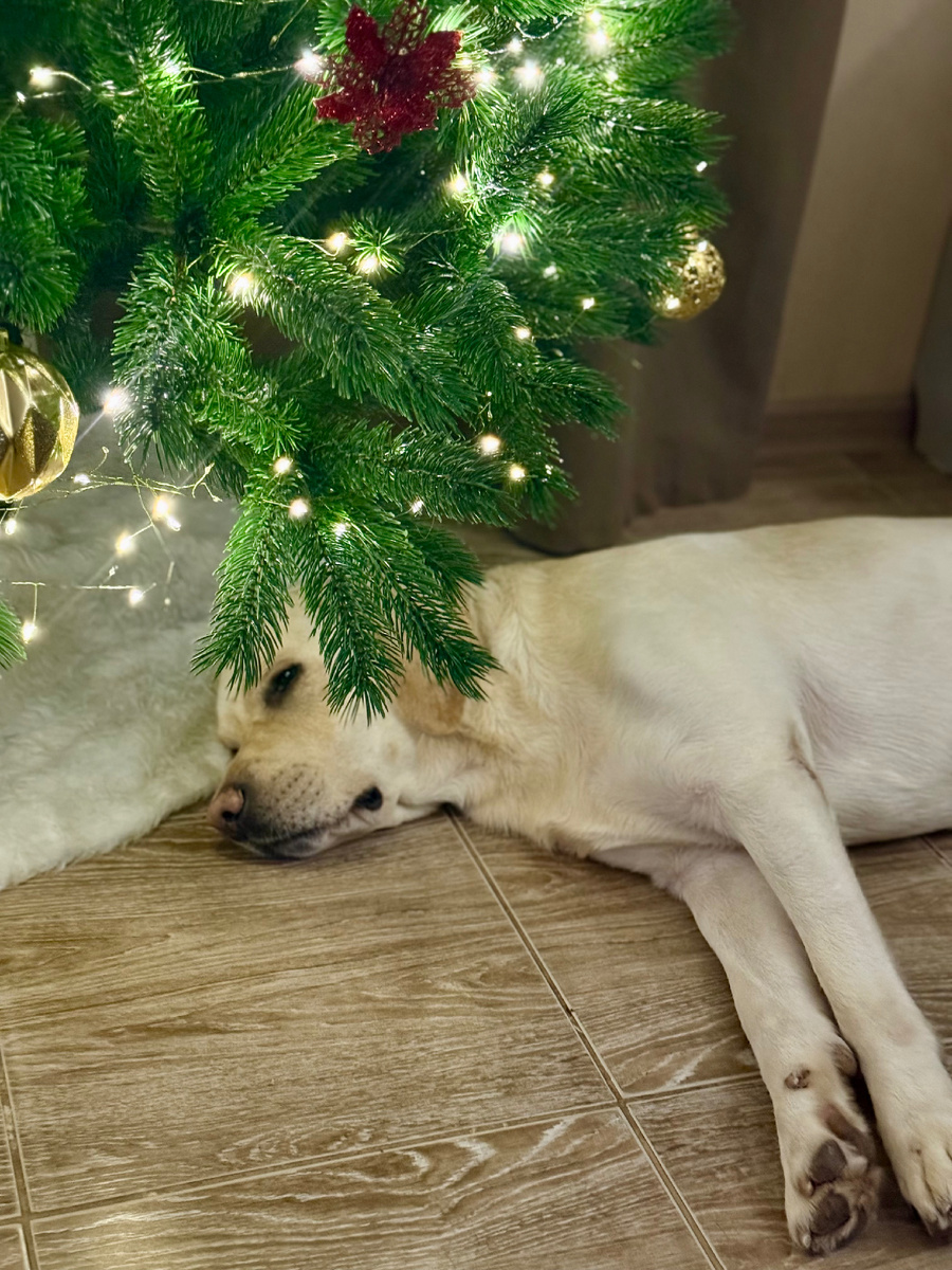 Помните нашу историю о том, как Нюша открыла, а Плюша тут же переняла моду на отдых под новогодней ёлкой? Казалось бы, идеальное кошачье укрытие. Но, как выяснилось, у нас в доме живут не только кошки-повторюшки, но и один очень наблюдательный пёс!