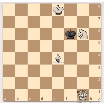 Автор задачи В. Кузьмичев, 2026 год. Черный король на "f6". У белых - ферзь, конь и слон. Ход белых мат в 2 хода. Подписывайтесь и ставьте лайк. Первый верный ход смотрите в галерее.