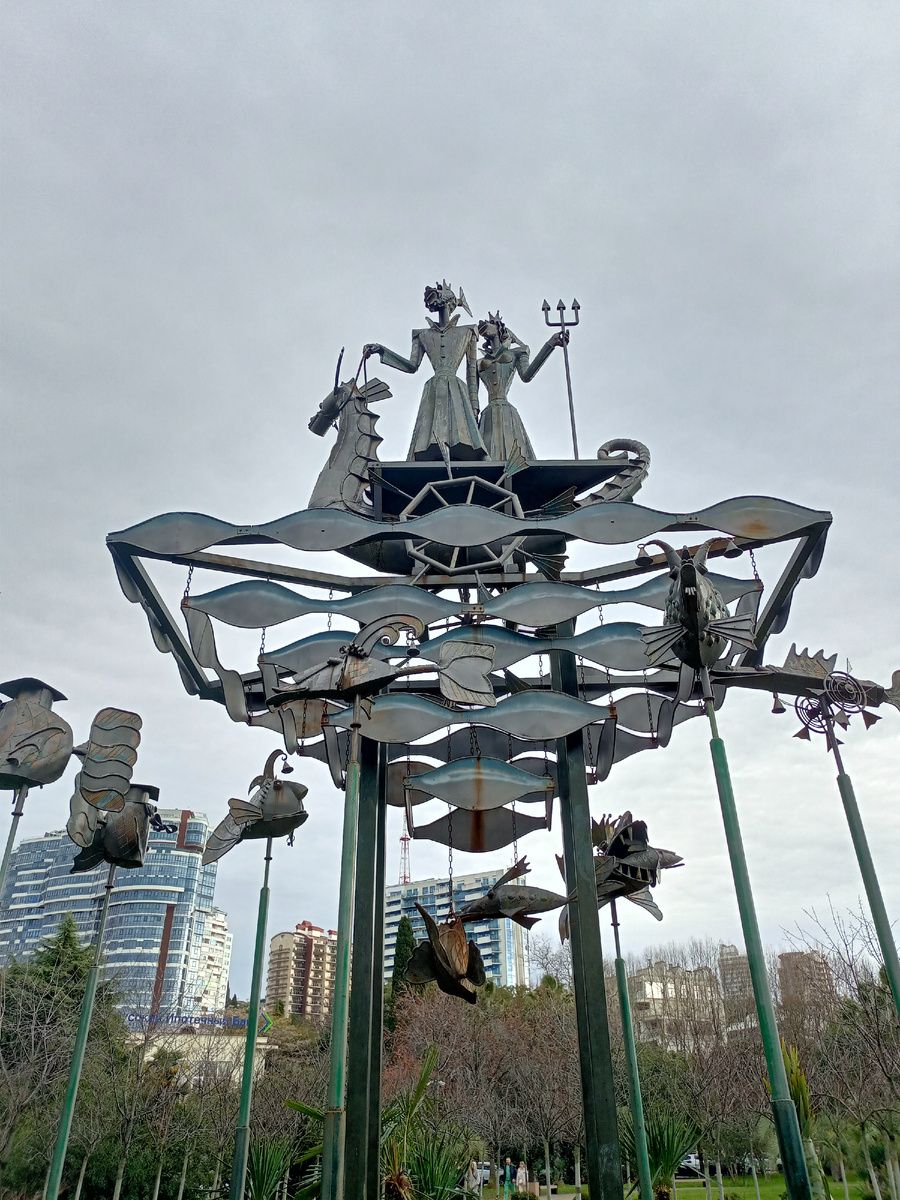 В композиции более 15 персонажей. Царь-рыба и Морская царевна в окружении свиты путешествуют по Черному морю на морском коньке...