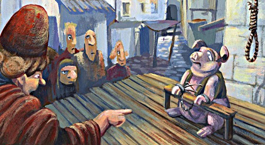 Вы когда-нибудь слышали, что животных судили за преступления? В средневековой Европе в 12-18 веках происходили суды над животными. Первый задокументированный случай в 1266 году, когда осудили свинью, которую публично казнили через повешение. Судили за смертельное нападение на ребенка. Большинство судебных процессов происходили во Франции, Германии, Италии. Но есть также исторические записи о подобных судах в США, Бразилии, Канаде. Некоторые примеры судебных процессов Швейцария. 1474 год. Петушок совершил сатанинское злодеяние. Он снёс яйцо. Да, именно так. В те времена это считалось ересью и суд приговорил петуха к сожжению на костре. На сожжение была собрана толпа людей, которая действительно серьезно относилась к произошедшему. Великобритания. Во время Наполеоновских войн, что были в период с 1792 по 1815 год, после крушения французского корабля у берегов Великобритании, выжила обезьяна, которая сумела добраться до города. Местные жители обеспокоились данным фактом, посчитав это шпио