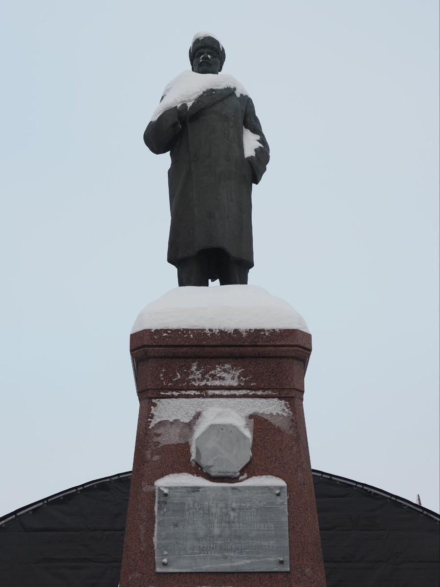 Памятник Ленину в Рыбинске довольно необычный — Ильич одет в зимнее пальто и шапку-ушанку