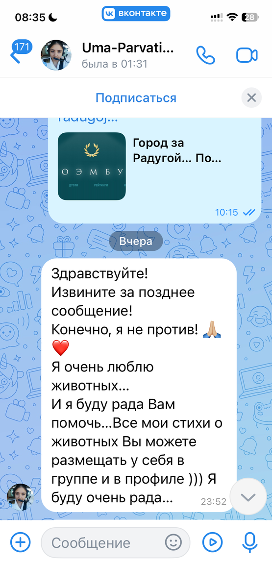 Сегодня мне ответила автор прекрасных стихов и дала разрешение на их размещение у меня на канале.