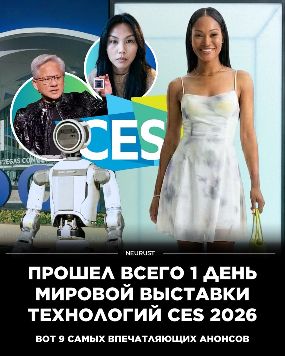 Можно понять, куда будет двигаться развитие технологий в 2026 году. 1. ASUS анонсировала очки, которые работают как игровой монитор. Гарнитура расширенной реальности поддерживает игры и видео с частотой 240 Гц. 2. Razer представила универсального AI-ассистента — аниме-девушку-голограмму для вашего рабочего стола. 3. LEGO Smart Brick — «умный кирпич», который издает звуки, светится и распознает, в каких фигурках и конструкциях используется. 4. Samsung представила загадочный сверхтонкий 3D-дисплей. 5. Boston Dynamics показала Atlas — человекоподобного робота нового поколения, и, похоже, теперь остальным есть за кем гнаться. 6. Следующее поколение Atlas теперь интегрировано с моделями искусственного интеллекта Google DeepMind. 7. Lucid представила роботакси, созданное в партнерстве с Uber и Nuro. 8. Withings Body Scan 2 — домашняя станция для оценки долголетия: ИИ-анализ артериального давления и более 60 биомаркеров. 9. 8BitDo FlipPad — портативный геймпад в складывающемся корпус