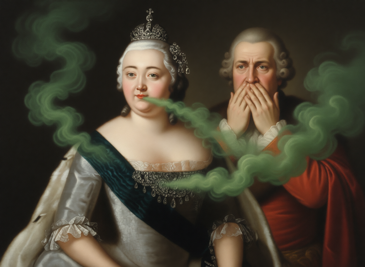 Камер-фрейлина позже признавалась, что пыталась незаметно опрыскать зал розовой водой, но запахи смешались, создав эффект «душистого болота». Сама Елизавета, заметив перешёптывания, громко рассмеялась: «Лучше пахнуть живой жизнью, чем мумифицированными благовониями!» — и приказала подать ужин раньше срока, чтобы «голод заглушил любопытные носы».