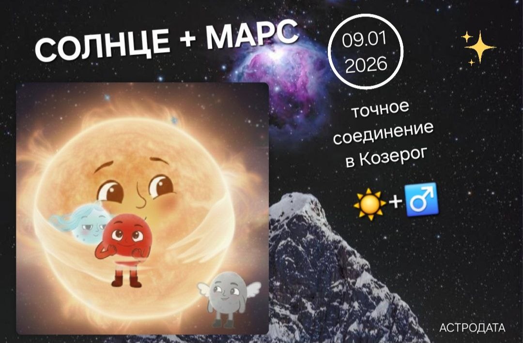 ! 🤗 ☀️+♂️ Наш астрологический календарь сообщает: 🗓 📢 сегодня, 9 ЯНВАРЯ 2026 года, в ПЯТНИЦУ (день Венеры/гармонии), МАРС в "сердце" СОЛНЦА (Cazimi) в 20° знака Козерог. Это день максимальной силы и решительных действий. В этот момент Солнце и все личные планеты (Марс, Венера, Меркурий) собрались в Козероге, создавая мощный, но сложный фон. ТЕМА☀️+♂️: "МАКСИМАЛЬНАЯ СИЛА ДЛЯ РЕШИТЕЛЬНОГО ПРЫЖКА" ⏰️⏰️⏰️ НЕ ПРОПУСТИТЕ! ШКОЛА АСТРОДАТА приглашает вас на самый важный бесплатный онлайн-урок этого месяца! Успейте СЕГОДНЯ разобраться с планетой САТУРН 🪐. Вы узнаете, как превратить любые трудности в возможность построить несокрушимый жизненный фундамент. Регистрируйтесь и забирайте свои подарки 🎁. Встречаемся СЕГОДНЯ, 09 ЯНВАРЯ 2026 г в 19:00 латв/20:00 мск. Действуйте прямо сейчас! Ссылка: https://astrodata.pro/urok Читайте далее в комментариях... 👇 #астрология #марс_cazimi #стеллиум #фундамент #astrodata