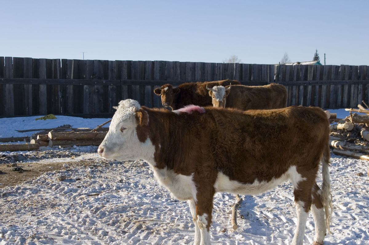 В догонку к прошлому посту, где комментаторы заинтересовались нашими всепогодными коровами. В основном, все эти коровы потомки симменталок, завезенных в советское время в колхозы. До них буряты держали местных, мелких и лохматых коров. Они меньше ели, выживали на улице на подножном корму, но при этом меньше давали молока, и только летом, и меньше давали мяса. Древний способ кочевого скотоводства - коров держат столько, сколько могут прокормится при кочевке, идя за лошадьми, которые могут копытить снег и добывать себе пропитание. Коровы не могут копытить, кормятся только на том, что торчит из-под снега. В современных реалиях остались эти потомки симменталок, результат беспорядочного скрещивания - породистого скота мало, держать породистого быка не выгодно, ест много, управляться с ним сложно. Обычно коров покрывают 2-3 летние бычки, которых постом забивают на мясо. Мясо очень вкусное! Не сравнить с магазинной говядиной. В норме снега у нас мало, лесостепь кругом, юго-восточная часть Бур