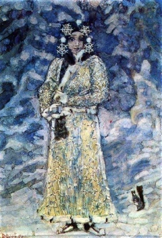 (1856, Омск, Область Сибирских Киргизов - 1910, Санкт-Петербург), русский художник рубежа XIX - XX веков, работавший практически во всех видах и жанрах изобразительного искусства (живописи, графике, декоративно-прикладном искусстве, скульптуре и театральном искусстве). "Снегурочка", 1890 Бумага / акварель, гуашь, 25 x 17 Государственный художественный музей им. И.П. Пожалостина, Рязань