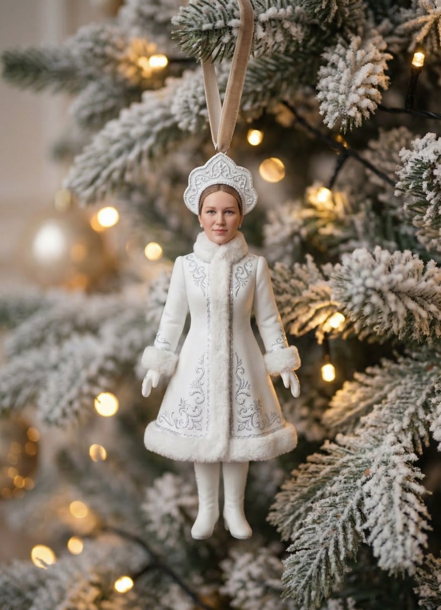 ✨🎄 Если пропустили 👇 ЗДЕСЬ читаем, какую ИИ можно использовать для выполнения задания ДЕНЬ 1. "НОВОГОДНИЙ ШАР" ДЕНЬ 2. "ВЯЗАНЫЙ МИР" ДЕНЬ 3. "КАНИКУЛЫ С ЛЮБИМЫМИ ГЕРОЯМИ" Сегодня: ДЕНЬ 4. "ЁЛОЧНАЯ ИГРУШКА" (вдохновлено вашими комментариями) ЭТАПЫ: 1️⃣ Добавляем в ИИ любую вашу фотографию, картинку, новогоднюю или зимнюю. У меня это моё фото. Не скажу, что получается 1 в 1, все таки Nano Banana делает чуть мультяшную 2️⃣ Добавляем ПРОМПТ👇👇👇 Создай гиперреалистичную миниатюрную фигурку девушки из изображения, полностью повторяющую её внешность, черты лица. Одежда другая: она в костюме современной снегурочки белого цвета и белых сапожках, на голове белый кокошник. Фигурка висит как ёлочная игрушка на ветке пушистой новогодней ели. Свет мягкий, тёплый, блики гирлянд создают красивое боке. Лицо мини-фигурки детализированное, выражение доброжелательное. Пропорции фигуры не искажены - как у обычного человека. Поверхность игрушки матовая, без лишних бликов. Атмосфера уютная и с