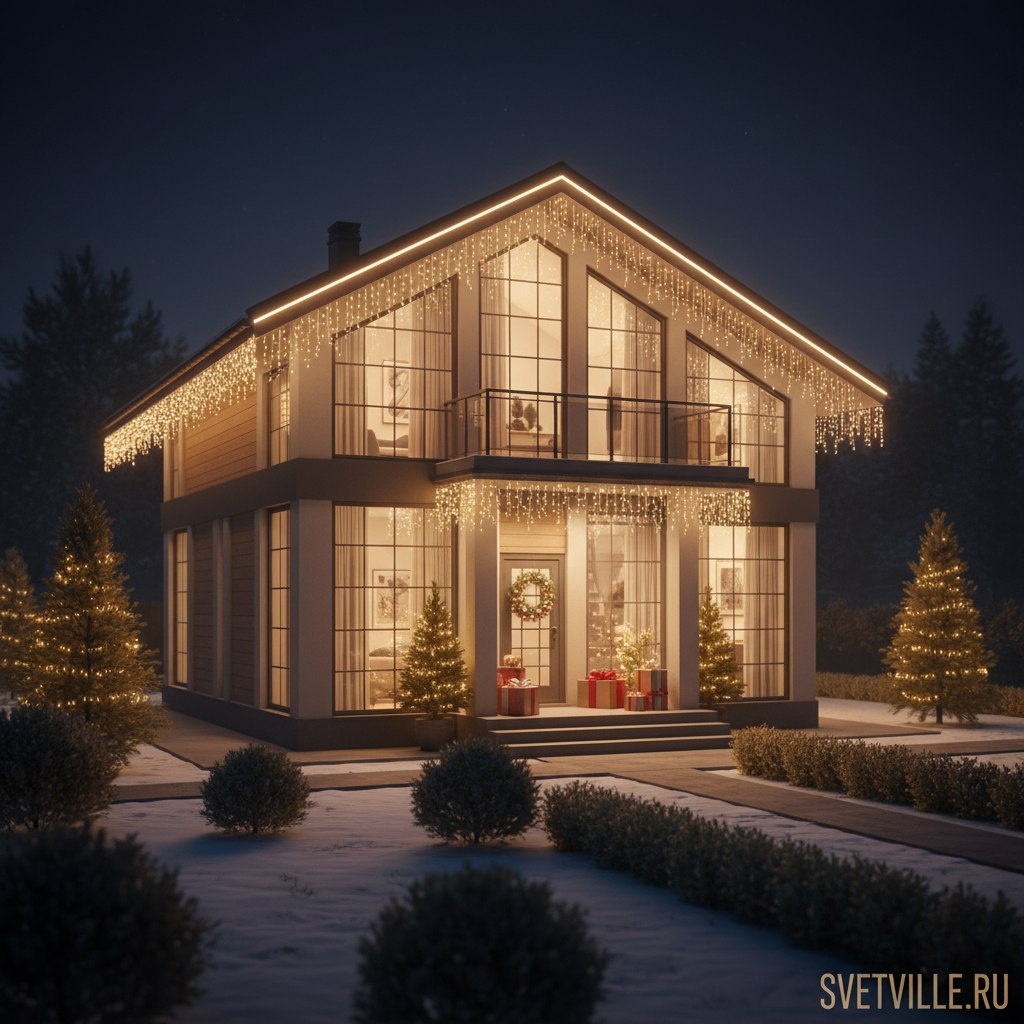 Новогодняя подсветка дома в Москве, СПБ и области