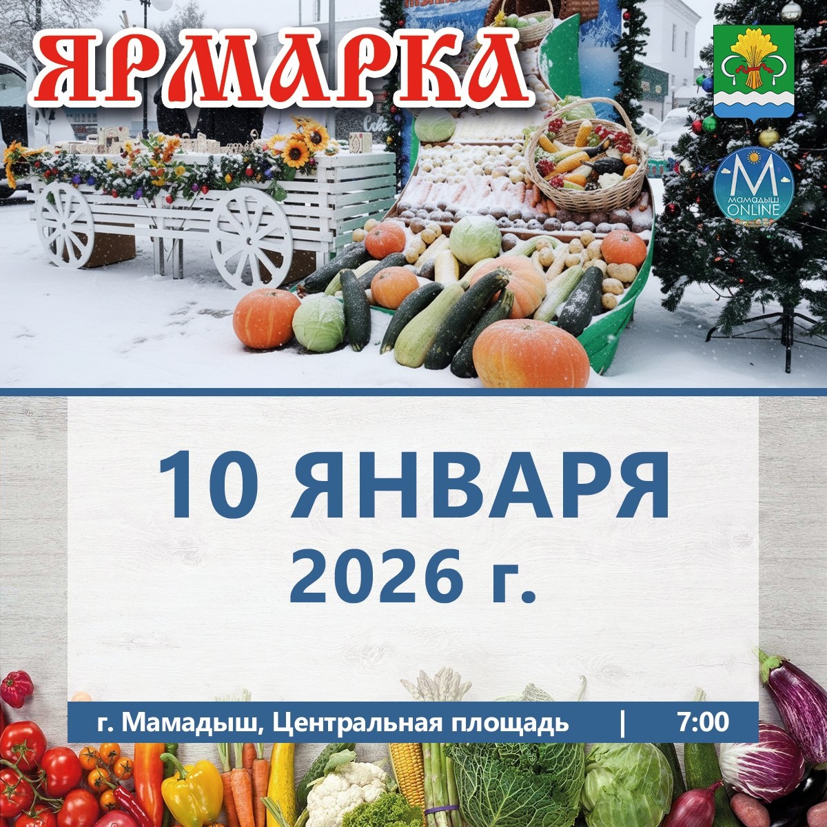📅 10 января, в субботу, на центральной площади г. Мамадыша состоится сельскохозяйственная ярмарка.