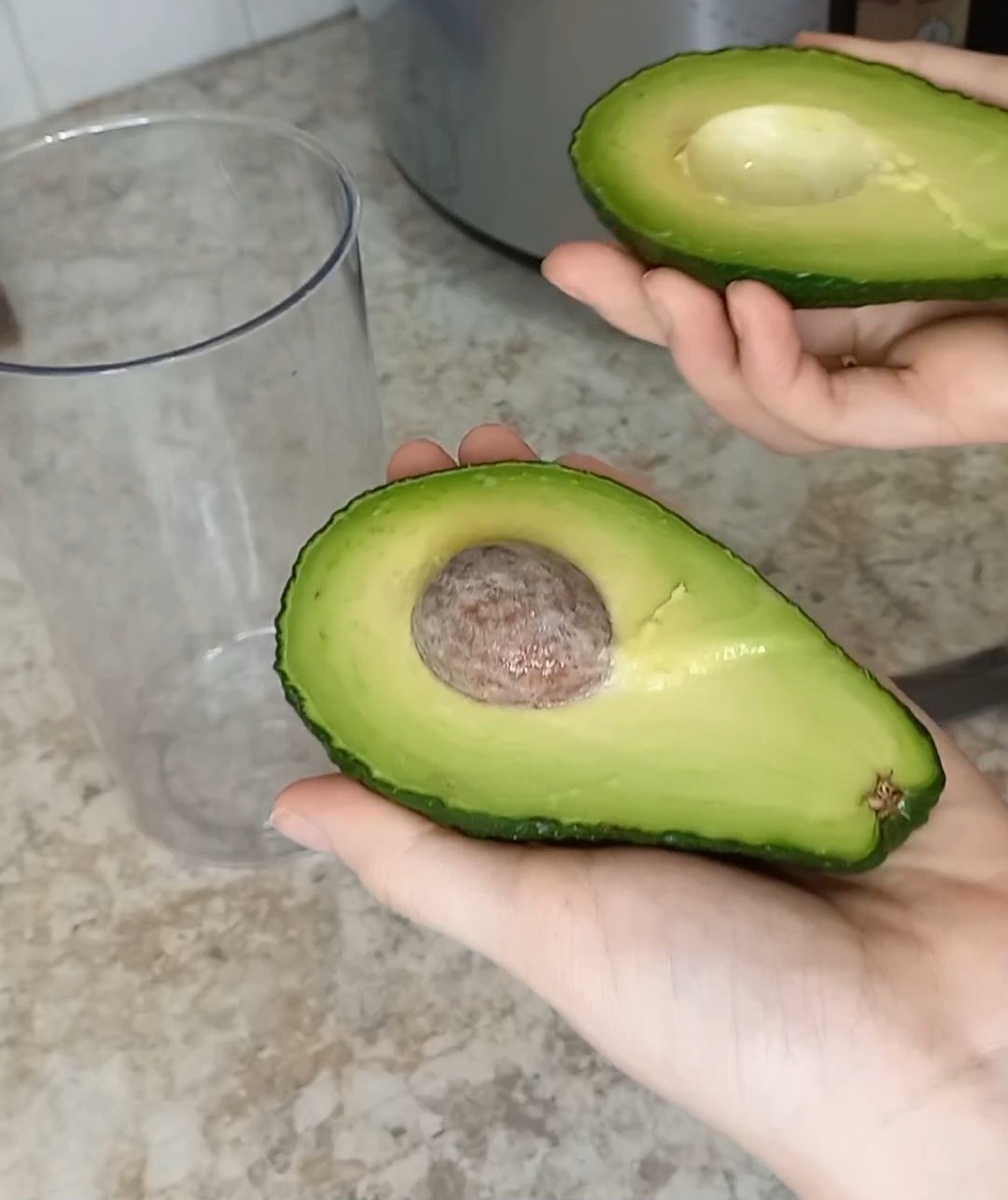 Очистите авокадо от кожуры и переложите в емкость для взбивания соуса.
