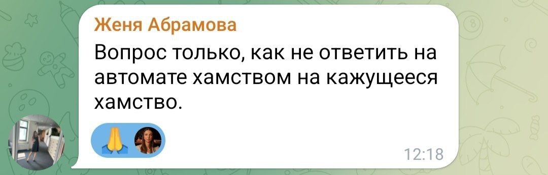 Спасибо за вопрос, благодаря вашим вопросам мы все можем глубже понять суть. Напомню, что самый глупый вопрос - это не заданный. Будьте умнее, задавайте вопросы 😉 Итак, внимание, вопрос😁: "Как не ответить на автомате хамством на кажущееся хамство?" 0. Если человек хамит, значит ему плохо, больно, он не справляется с жизнью, с собой, он не вас хочет обидеть, ему помощь нужна, это такой своего рода крик о помощи, не самый экологичный, конечно. 1. Ключевое тут слово "кажущееся" хамство. Если мы считаем, что мир против нас, вставляет нам палки в колеса, унижает, оскорбляет и т.д., то постоянно находим этому подтверждение в "хамах" в очередях, в бездушных начальниках, "сложных" детях, критикующих мужьях, родителях и т.д. Чтобы "не казалось", важно изменить мировоззрение, отношение к Миру, допустить мысль, о том, что он дружелюбен, он заботится о нас, и потихоньку находить всё больше подтверждений этому. Именно для этого я запустила перед НГ благотворительный марафон, а сейчас погружен