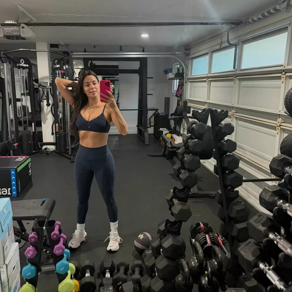 Ева Лонгория продемонстрировала идеальную фигуру в черном спортивном топе и леггинсах с высокой талией, опубликовав соблазнительное селфи