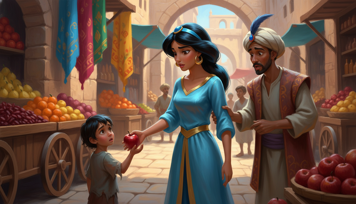 Я помню, как впервые заметила эту деталь в мультфильме. Жасмин выбегает из дворца, срывает яблоко с лотка и отдаёт голодному ребёнку. Торговец хватает её за руку, требуя заплатить. И она не кричит "Да я принцесса!", не зовёт стражу. Она растеряна, извиняется, пытается объяснить. Принцесса не умеет торговаться. Но умеет признавать свою ошибку перед человеком, которого видит впервые. Это странно, если подумать. Её учили церемониалу приёма послов, грации, умению держать спину. Но не научили главному. А ведь в восточных дворцах того времени существовала жёсткая иерархия. Простолюдину нельзя было смотреть в глаза султану. Женщине — появляться перед чужими мужчинами без покрывала. Слуги пятились спиной, выходя из покоев правителя. Дворцовый этикет был сложнее шахматной партии, где одно неверное движение могло стоить головы. Жасмин всё это знала. И при этом сидела на краю фонтана рядом с Аладдином — уличным вором в грязной жилетке. Разговаривала с ним так, будто они равны. Моя бабушка говори