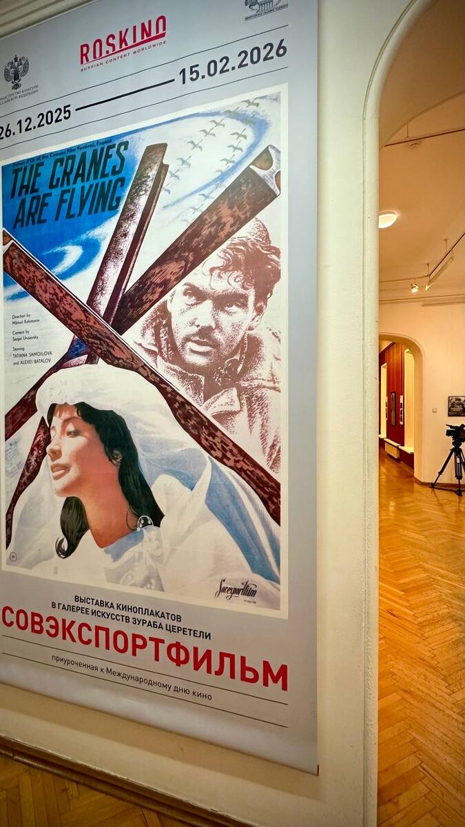 🎥 Выставка киноплакатов «Совэкспортфильма» Галерея искусств Зураба Церетели. 📍Пречистенка 19/11 стр.2 Если вы любите советские фильмы, то сходите на выставку «Совэкспортфильм» — афиши советских фильмов, которые показывали за рубежом. «Совэкспортфильм» в советское время занимался продвижением отечественного кино более чем в 70 странах. В экспозиции представлены оригинальные — плакаты, фотографии со съёмок, архивные журналы, киноаппаратура, бобины, плёнки, негативы. К каждому плакату есть информация о фильме и QR-код для его просмотра. Людей на выставке не много, можно не спеша насладиться советским кинематографом. Выставка будет работать до 15 февраля 2026 года. Это хорошее место для зимнего дня: не нужно толкаться на морозе в толпе желающих посетить новогодние площадки, а спокойно провести пару часов в уютных залах галереи, посмотрев уникальную выставку. Совет! После экспозиции пройдитесь по самой галерее — особенно стоит заглянуть в зал античности. Там всегда тихо, и в ок