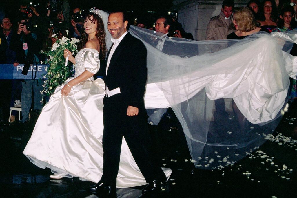 Пышные рукава, бесконечные шлейфы и смелые детали — 90-е были временем, когда свадебная мода не знала слова «слишком». В ту эпоху главные звёзды Голливуда шли к алтарю в нарядах, которые и сегодня вызывают восхищение и легкую ностальгию. От гигантского головного убора Селин Дион до 8-метрового шлейфа Мэрайи Кэри — давайте вспомним самые незабываемые, роскошные и порой эксцентричные свадебные платья знаменитостей 90-х. Когда поп-дива выходила замуж за музыкального магната, ее платье от Vera Wang было таким же грандиозным, как и её голос. Роскошное бальное платье с пышной юбкой, вдохновленное нарядом принцессы Дианы, венчал 8-метровый шлейф и 3-метровая фата. Стоимость этого шедевра составила 25 000 долларов. Если Мэрайя была принцессой, то Селин — настоящей снежной королевой. Ее платье, расшитое кристаллами, было дополнено, пожалуй, самым знаменитым свадебным аксессуаром десятилетия — гигантским головным убором из 2000 кристаллов Swarovski весом более 3 килограммов, который травмировал