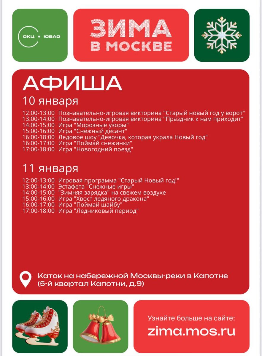 Друзья! Знакомим вас с афишей мероприятий в рамках проекта «Зима в Москве» на ближайшие дни