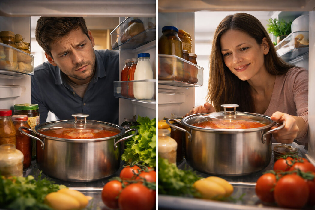 Ситуация узнаваемая. Мужчина открывает холодильник, смотрит внутрь несколько секунд, закрывает дверцу и говорит, что еды нет. Женщина открывает тот же холодильник и достаёт кастрюлю с борщом. Удивление возникает у всех участников сцены, но причина здесь вполне конкретная. В основе лежит то, как работает фильтр восприятия. Мужчина обычно заглядывает в холодильник с чёткой задачей: найти быстрое решение. Его внимание не сканирует всё пространство целиком. Оно проверяет ограниченное количество ожидаемых вариантов. Например, контейнер с готовой едой, сковороду, упаковку, которую можно сразу взять. Всё, что не совпадает с внутренним шаблоном "готово к употреблению", выпадает из поля внимания. Кастрюля с борщом при этом может находиться прямо перед глазами. Она физически видима, но не проходит через фильтр как ответ на текущую задачу. Поэтому мозг не фиксирует её как находку. Поиск завершается с выводом, что подходящего варианта нет. Это же происходит со шкафами. Мужчина открывает дверцу не